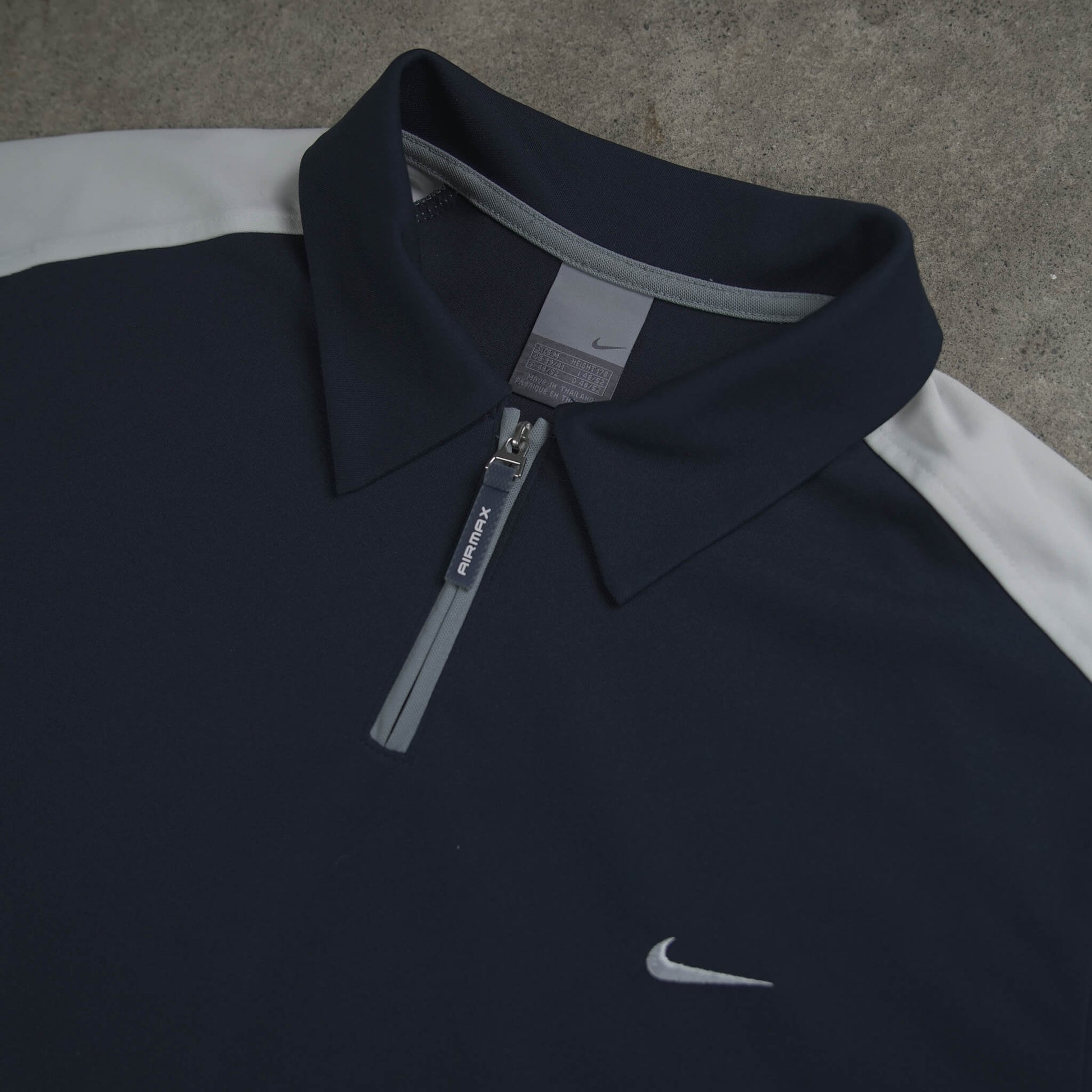 Engineered for performance and style, it features a 1/4 zip placket with a custom branded "AIRMAX" zipper pull and breathable mesh side panels for maximum airflow. The iconic Swoosh is neatly embroidered on the chest, while the "Series 87" patch at the hem adds that final touch of collector-level detail. A standout piece for anyone looking to complete a retro-tech look or pair it with vintage AM1s.